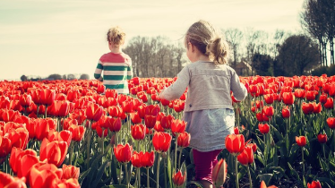 봄에는 튤립, 수선화, 유채꽃이 만발하고