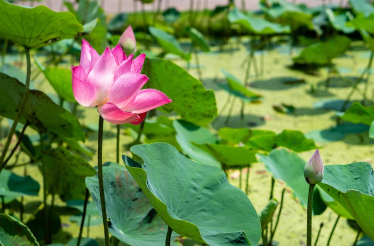 여름에는 연꽃과 수국, 시원한 그늘