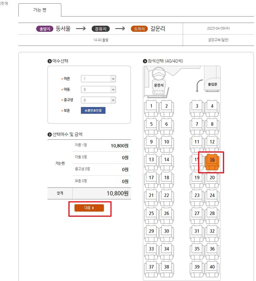 - 좌석 미지정 노선은 현장에서만 발권 가능
