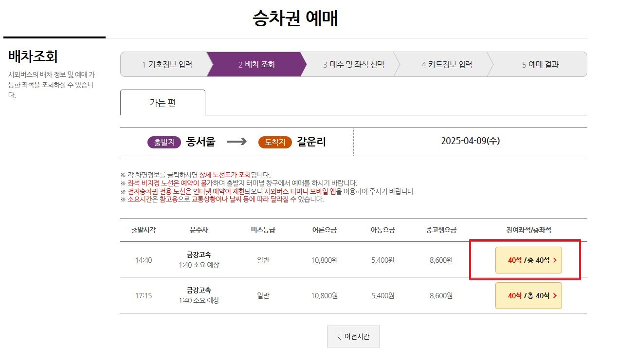 - 시외버스 통합예매시스템 접속.