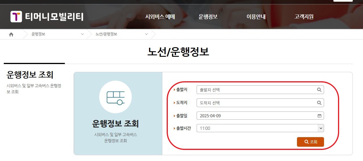 - 가까운 시외버스터미널 매표소 방문.