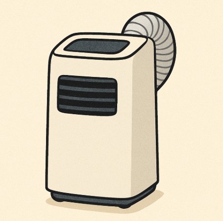 이동식 에어컨은 구조상 에너지 손실이 많아 정통 벽걸이·스탠드형보다 냉방 성능이 떨어집니다.